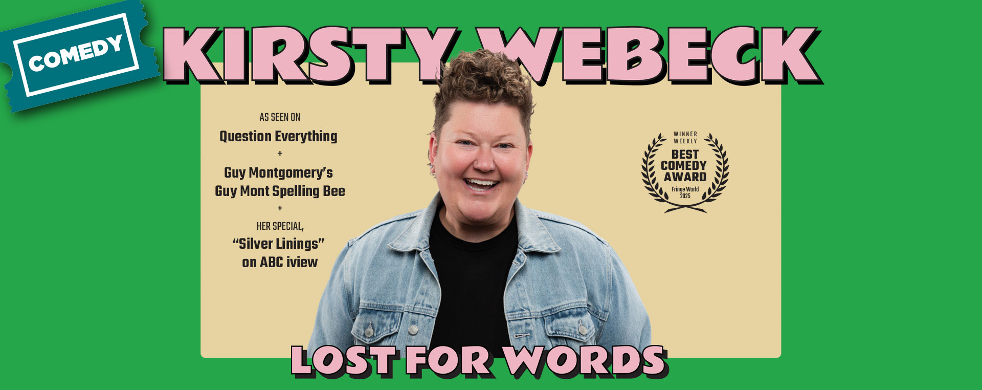 After a huge 2025 Australian tour, Kirsty is back to show you that the words just keep flowing and that they’re always hilarious. As seen on Guy Montgomery’s Guy Mont-Spelling Bee and Question Everything, and as heard on ABC Radio’s Thank God It’s Friday with Charlie Pickering.